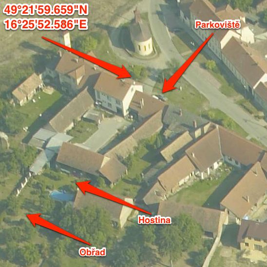 Lomnička 18, za kapličkou doprava, mezi grilem a bazénem.